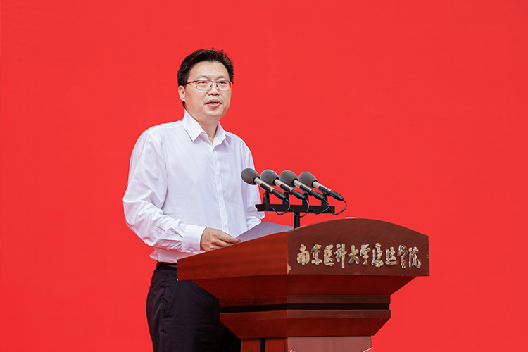 胡志斌校长代表南京医科大学对新生表示祝贺,他指出,新时代医学青年生逢其时,重任在肩,必须回答好“如何从新出发、向新而行”这一命题。胡校长殷切寄语同学们,既要精进专业,又要涵养仁心,成长为有担当、有本领、有温度的卓越医学人才,不负时代,不负生命,积极投身民族复兴伟业,在实现中国式现代化的广阔征程上,谱写属于新一代南医人、康达人的辉煌篇章。