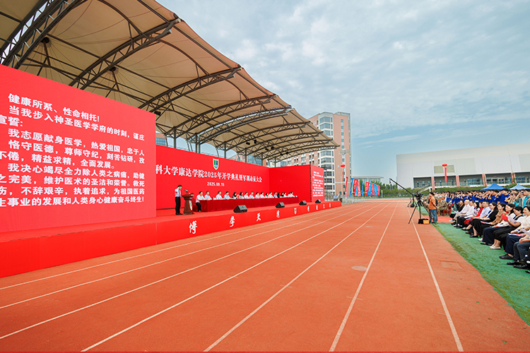 开学典礼在庄严的国歌声中拉开帷幕。院长张鸿来代表学院对所有新生表示欢迎,希望同学们潜心钻研、锤炼本领,努力成长为新时代护佑生命的医药卫生英才,并表示学院将以建设特色鲜明的高水平应用型医药类本科院校为目标,与同学们一道进步、共同成长,奔赴更加广阔的明天。