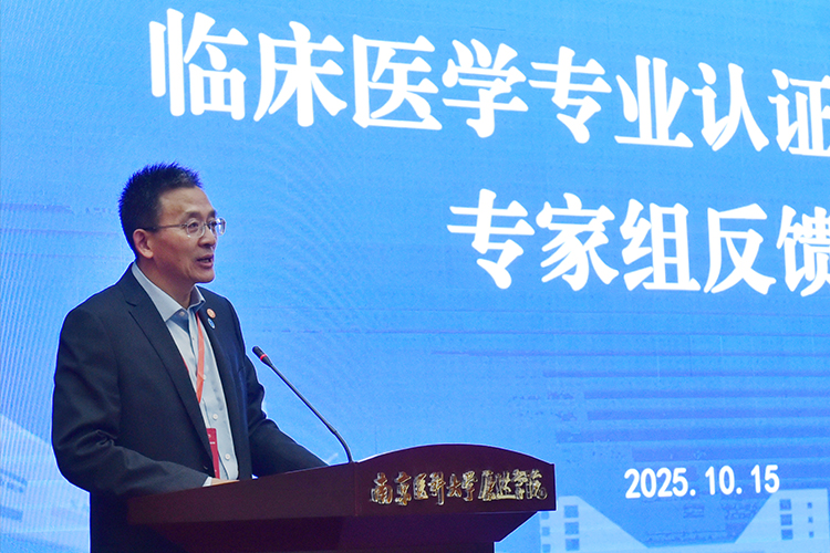 沈历宗副校长代表南京医科大学和学院对专家们辛勤的工作表示敬意和感谢,并进行表态:一是要提高站位,凝聚共识,将本次临床医学专业认证前期考察整改作为学院高质量发展的重要抓手,推动专业建设再上新台阶;二要强化责任,立行立改,梳理专家意见,确保整改任务落到实处;三要构建长效机制,久久为功,形成常态化、长效化的工作机制,真正做到以评促建、以评促改。最后,他希望专家们继续关心和支持康达学院临床医学专业建设的长远发展。