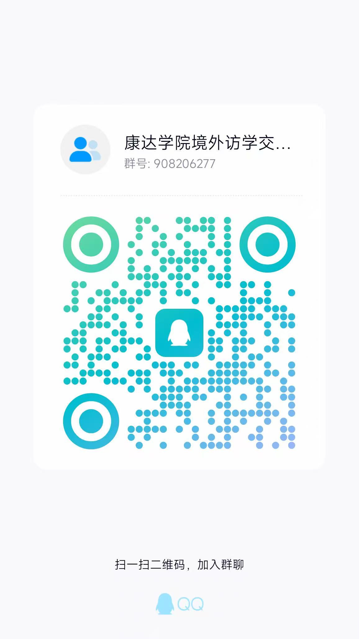 有意参加者扫描二维码填写《南京医科大学康达学院学生境外高校课程学习申请表》,请按要求认真填写,并提交相关必要的材料附件。因提交虚假材料、材料缺漏等个人原因导致的后续申请问题,责任自负。中心将审核申请材料,并组织评审,择优录取。