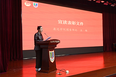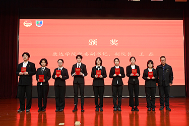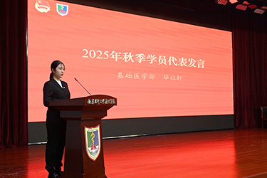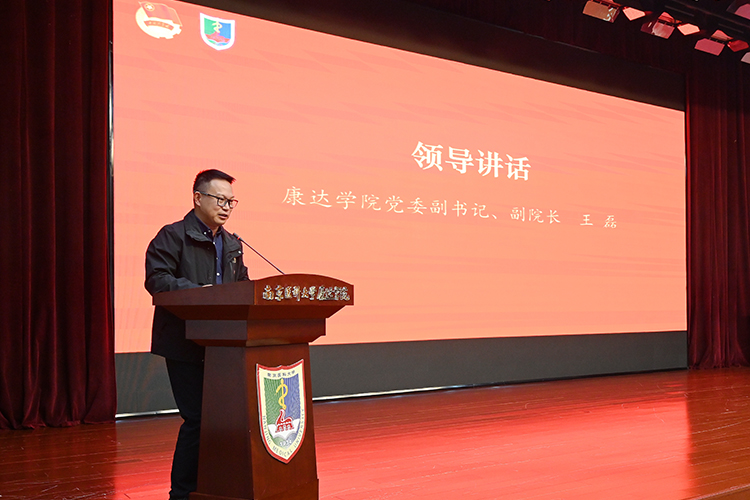 团委书记王腾宣读了《关于表彰南京医科大学康达学院2025年春季“青马工程”培训班“优秀学员”的决定》,党委副书记、副院长王磊为优秀学员代表颁发证书。基础医学部2025级临床3班毕以轩同学代表秋季全体学员作表态发言。连云港市思政技能大比武特等奖获得者、学院红细胞宣讲团成员孙琬悦同学分享主题团课——《赓续红医精神 共谱康达新篇》。
