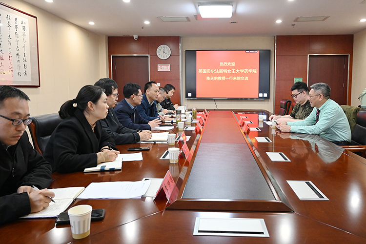 10月30日下午,英国贝尔法斯特女王大学药学院天然药物开发中心首席主管陈天豹、主任马成帮来院交流。院领导王兴东、张怀平,药学部、党政办公室负责人参加座谈。会议由副院长张怀平主持。