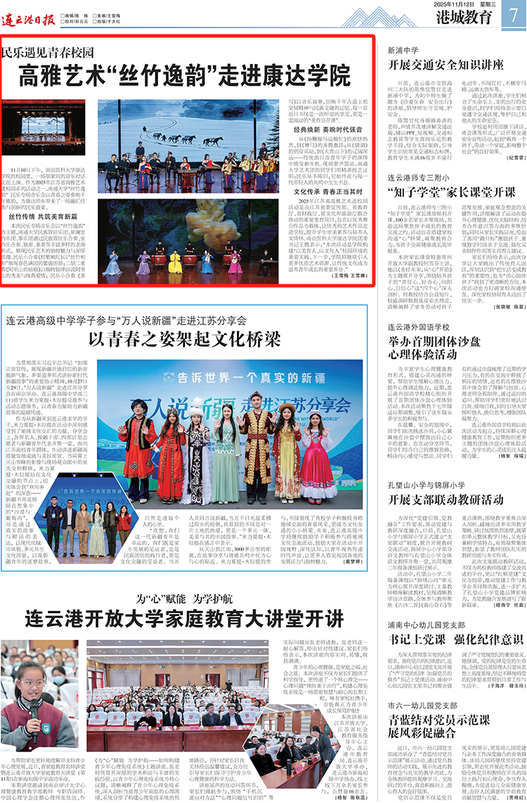 [连云港日报]民乐遇见青春校园 高雅艺术“丝竹逸韵”走进康达学院
