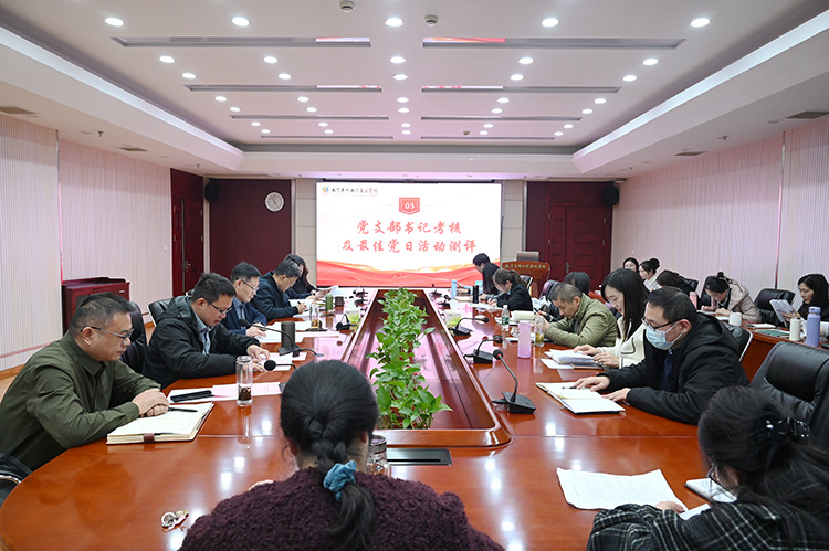 1月13日下午,我院在行政楼422会议室召开2025年度党支部书记述职评议会。院领导王兴东、张鸿来、王磊、顾模进出席会议,党政办公室、党委组织宣传部负责人及各党支部书记、副书记参加会议。会议由党委副书记、副院长王磊主持。