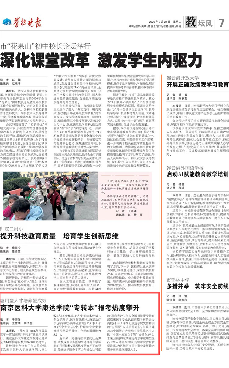 [苍梧晚报]应用型人才培养显成效 南京医科大学康达学院“专转本”报考热度攀升